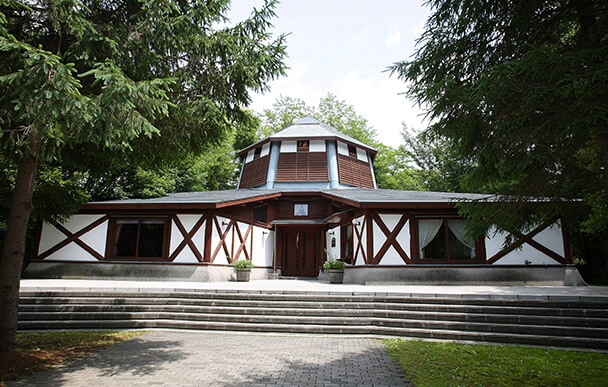 軽井沢大賀ホールは、音響的理想を追求した五角形をしています。また、木の温もりが感じられ、年月を経るごとに音の深みも増すと言われています。軽井沢を訪れる人々の心が自然の美しさと、音楽のかもし出す感動に包まれることを望んで造られました。